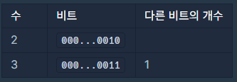 xor의 결과에서 1의 개수를 세면 해밍 거리를 구할 수 있다.