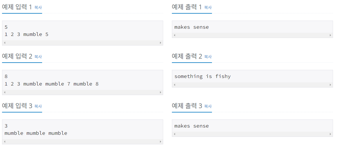 If Arild’s counting might make sense, print the string “makes sense”. Otherwise, print the string “something is fishy”.